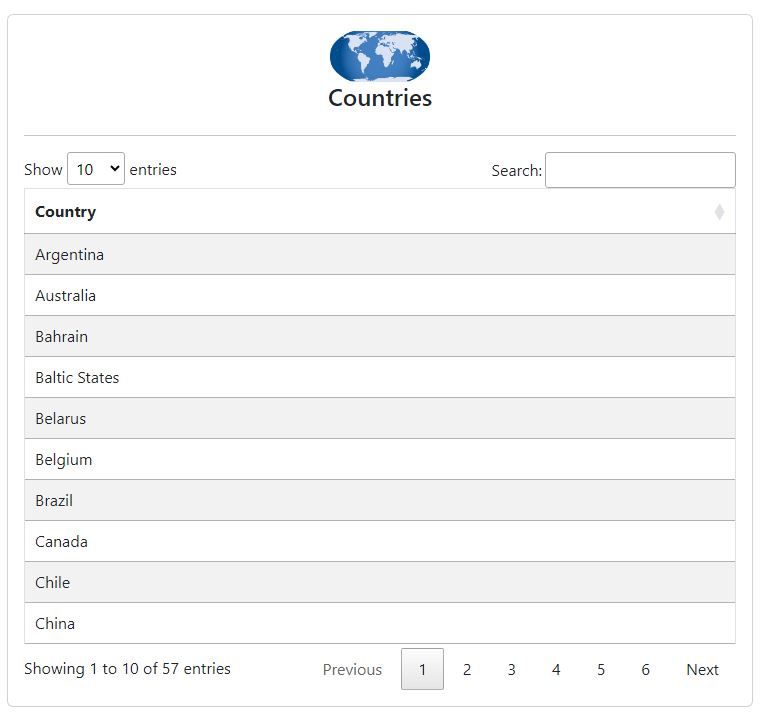Number of entries per page - Use the Show XXX entries drop-down to change the number of rows to display on each page.